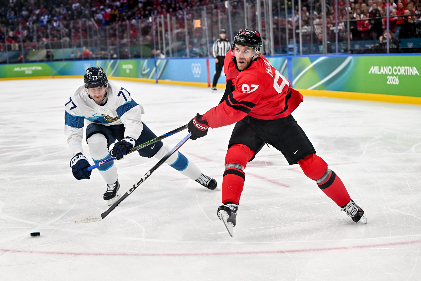 MILANO – Come preventivato alla vigilia, il Canada è una della due finaliste dei Giochi Olimpici di Milano e Cortina. La selezione di Jon Cooper – priva dell’infortunato Crosby – è arrivata all’atto finale passando da due turni ad eliminazione a dir poco difficili, dato che dopo aver eliminato la Cechia solo all’overtime dei quarti di finale, ha dovuto sudare altre sette camicie per avere la meglio sulla Finlandia, di nuovo con una rimonta in extremis.
