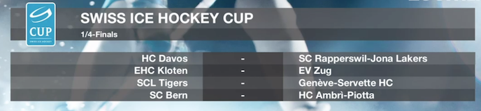 Le altre sfide vedranno la rivincita della passata finale tra Davos e Rapperswil, mentre il Langnau ospiterà il Ginevra ed il Kloten – unica squadra di Swiss League – ospiterà lo Zugo.